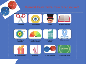 Welk doel streef je na op dit moment? De perfecte juf of meester zijn, een leuke tijd heb ondanks de lockdown, genieten van elkaar of iets heel anders. Zo kun je alles het het teamwiel toepassen op je thuissituatie. We hebben nog nooit zo’n divers “team” gehad en van je kinderen kun je ook weer ‘speelsheid” leren, maak het niet zo zwaar. Is een taak heel saai, maak er dan een spel van, gebruik 2 dobbelstenen en kijk welke workhack je erin kunt maken door de taak in kleine taakjes tevredenen, het op een andere plek te doen (kan ook bijvoorbeeld via een leuk programma wonder.me)